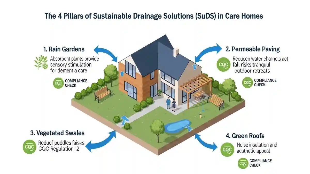The future of sustainable drainage solutions CQC care home design is the integration of SuDS (Sustainable Drainage Systems). In West Norwood, Policy EN18 of the Local Plan encourages SuDS to manage surface water runoff, which often plagues the surrounding area.
